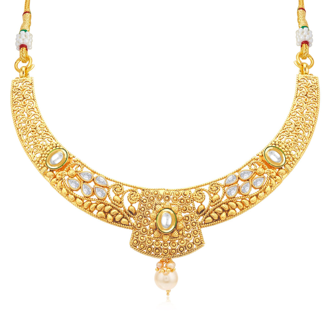 Description: This Sukkhi Exquitely Gold Plated Collar Necklace Set For Women is made of Alloy. Women love jewellery; specially traditional jewellery adore a women. They wear it on different occasion. They have special importance on ring ceremony, wedding and festive time. They can also wear it on regular basics. Make your moment memorable with this range. This jewel set features a unique one of a kind traditional embellish with antic finish.
