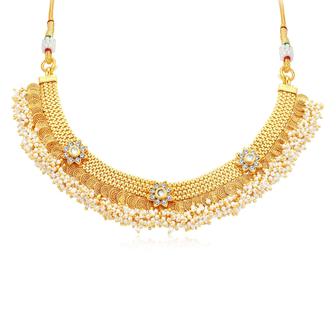 0388 Sukkhi Glamorous Jalebi Gold Plated AD Choker Necklace Set For Women