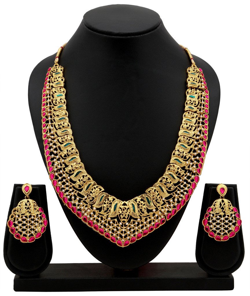 Description: This Sukkhi Incredible Gold Plated AD Collar Necklace Set For Women is made of Alloy. Women love jewellery; specially traditional jewellery adore a women. They wear it on different occasion. They have special importance on ring ceremony, wedding and festive time. They can also wear it on regular basics. Make your moment memorable with this range. This jewel set features a unique one of a kind traditional embellish with antic finish.