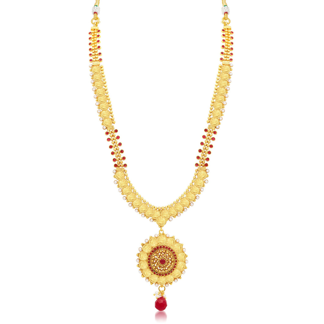 Description: This Sukkhi Lavish Laxmi Coin Temple Gold Plated Long Haram Necklace Set For Women is made of Alloy. Women love jewellery; specially traditional jewellery adore a women. They wear it on different occasion. They have special importance on ring ceremony, wedding and festive time. They can also wear it on regular basics. Make your moment memorable with this range. This jewel set features a unique one of a kind traditional embellish with antic finish.